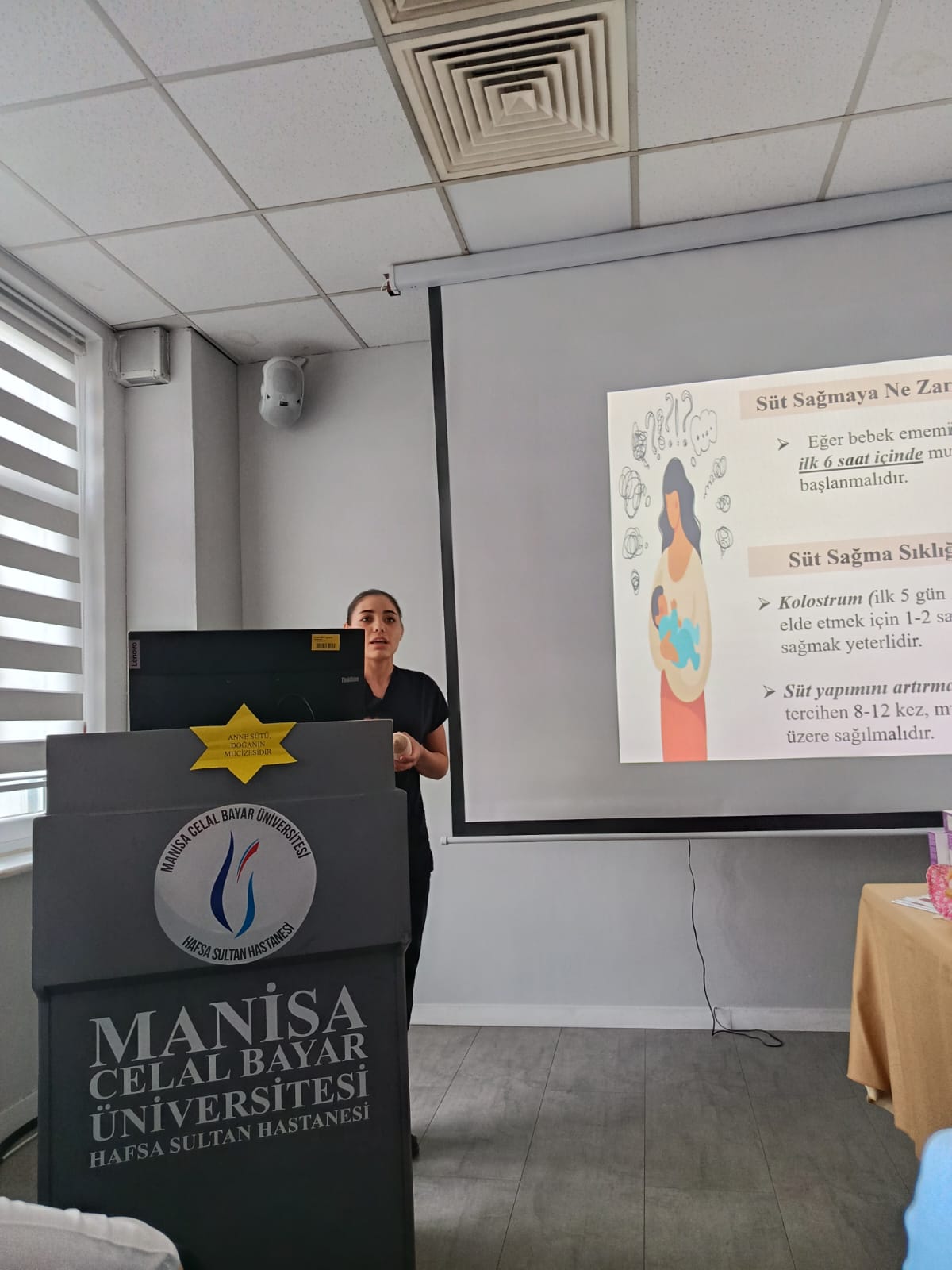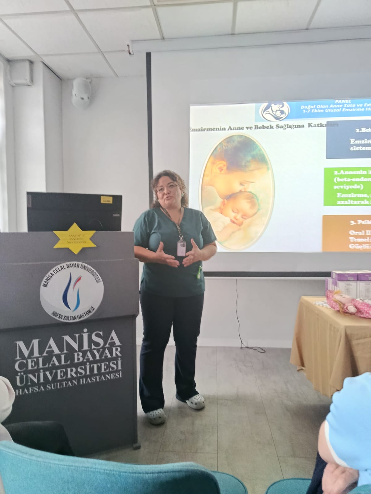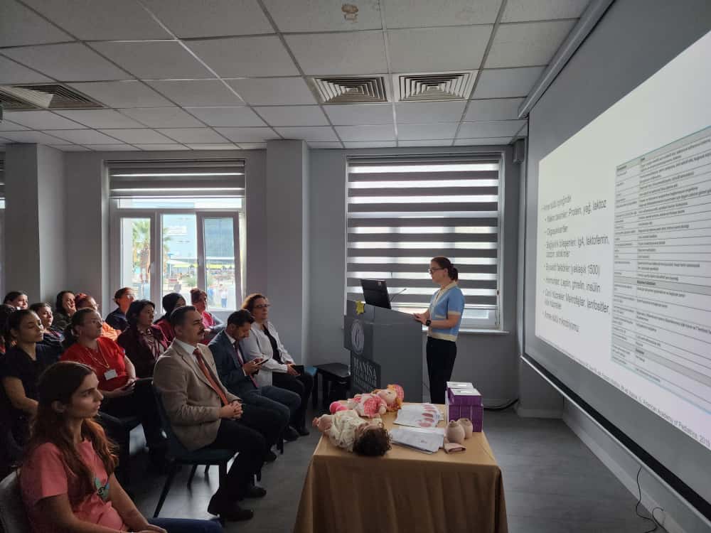 Haftanın en anlamlı etkinliklerinden biri olan panel ise 3 Ekim 2025 tarihinde, “Doğal Olan Anne Sütü ve Emzirme” temasıyla gerçekleştirildi. Hastanemiz Yeni doğan Uzmanı Doç.Dr. Sema Tanrıverdi moderatörlüğünde, Başhekim Prof. Dr. İsmet Topçu’nunda önemli katkıları olan Panelimize, hastane yönetimimiz, Manisa İl Sağlık Müdürlüğü yetkilileri, Manisa Celal Bayar Üniversitesi Ebelik Bölüm Başkanı Doç. Dr. Nursen Bolsoy, ebelik öğrencileri, gebeler, yeni doğum yapmış anneler (lohusalar) ve hastane çalışanlarımız, hemşire ve ebelerimiz, emzirme komitesi üyeleri yoğun ilgi gösterdi.