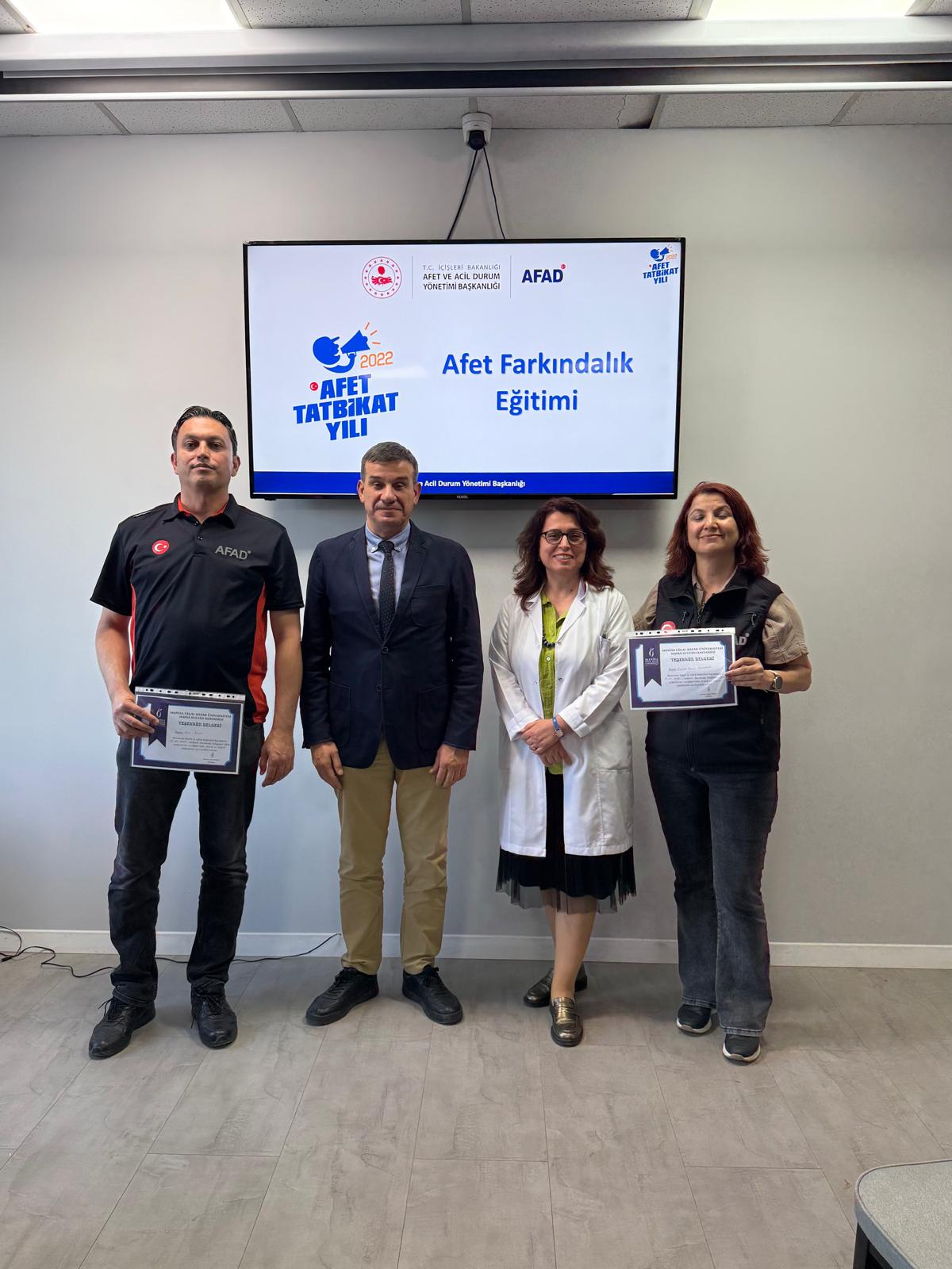 15 Mayıs 2025 tarihinde Manisa Celal Bayar üniversitesi Hafsa Sultan hastanesi Başhekimlik Toplantı Salonunda Temel Afet Bilinci eğitimi düzenlenmiştir.